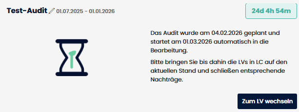 - Hinweistext: Informiert über das geplante Startdatum und die hinterlegten Auditoren