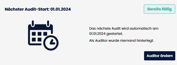 - Überschrift: "Nächster Audit-Start: [Datum]"