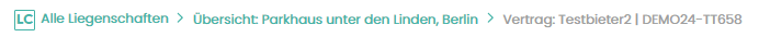 Oben auf der Seite finden Sie eine Navigationsleiste (z. B. Alle Liegenschaften > Vertragsübersicht: [Liegenschaft] > Audit: [Audit-Titel]). Diese zeigt Ihren aktuellen Kontext und ermöglicht schnelles Zurücknavigieren.