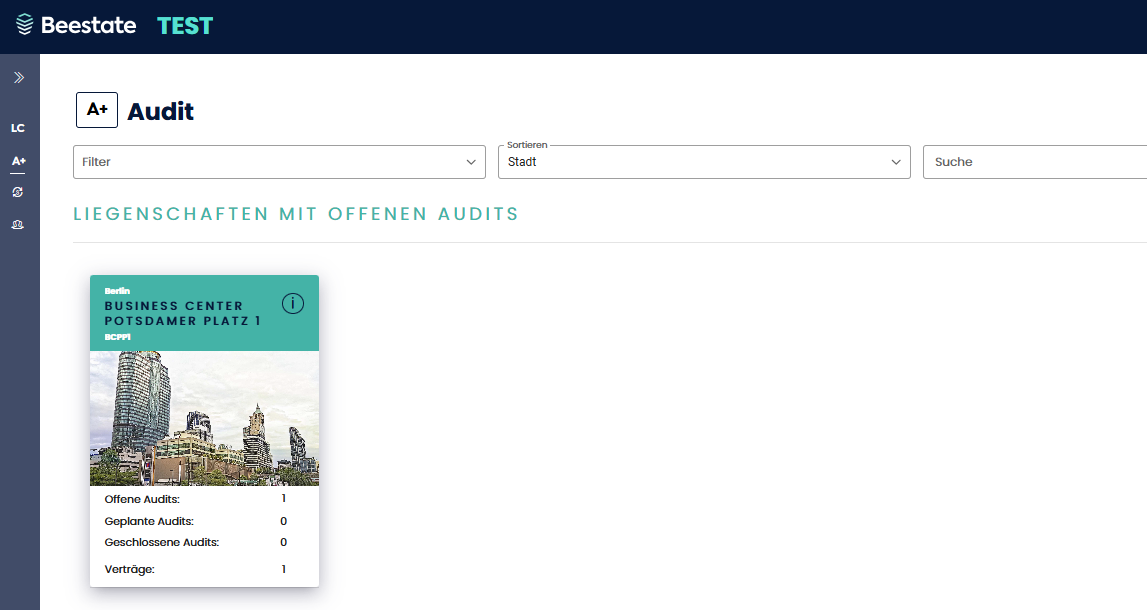 Wenn Sie Zugriff auf das Audit-Modul haben, sehen Sie eine Übersicht der Liegenschaften, bei denen Sie als Dienstleister hinterlegt sind.