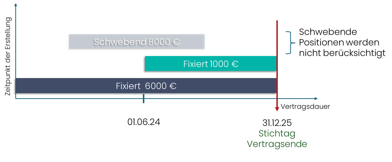 - Schwebende Positionen: Änderungen oder Anpassungen, die noch nicht durch einen Nachtrag fixiert wurden.