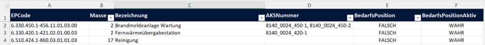 Excel-Import für neue EP-Positionen: