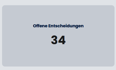 - Offene Entscheidungen: Ein großer Block mit der Gesamtzahl der offenen Positionen (Summe über alle Verträge der gefilterten Liste).
