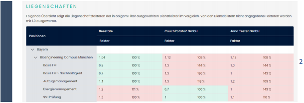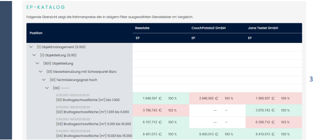 Der Reiter "Nach Rahmenpreisen" in der Beestate Plattform ist darauf ausgelegt, eine umfassende