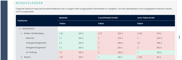 ermöglicht Ihnen eine vergleichende Analyse der Anbieter basierend auf verschiedenen Faktoren