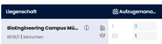 Wenn der neue Faktor vom bisherigen Wert abweicht, wird die Zahl blau gefärbt. Dies hilft Ihnen, schnell zu erkennen, welche liegenschaftsspezifischen Anpassungen Sie vorgenommen haben.