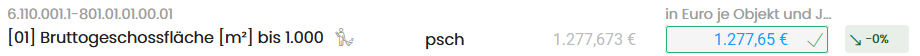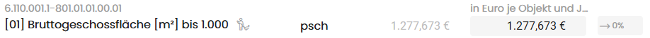 Für jede Liegenschaft (beide Zeilen) und jede Leistungsgruppe gibt es zwei Wertpaletten: