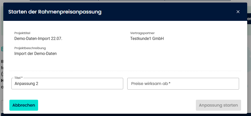 - Anpassungstitel: Name der Rahmenpreisanpassung