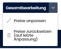 Die Gesamtbearbeitung ist ein leistungsstarkes Werkzeug für pauschale Preisanpassungen. Sie öffnet sich über den Gesamtbearbeitung-Dropdown-Button im Rahmenpreise-Bereich.