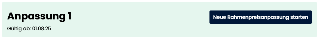 - Neue Rahmenpreisanpassung starten: Button zum Starten der Rahmenpreisanpassung (sofern aktuell keine Anpassung aktiv ist)