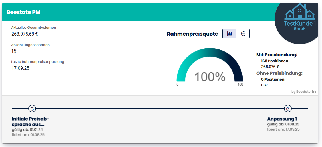 - Letzte Rahmenpreisanpassung: Das Datum der letzten durchgeführten Anpassung